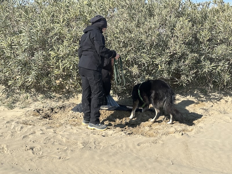 Der weitläufige Sandstrand war dabei nicht nur beliebter Hundeauslauf, sondern wurde kurzerhand auch genutzt, um eine Versteckperson ganz einfach mal einzubuddeln.