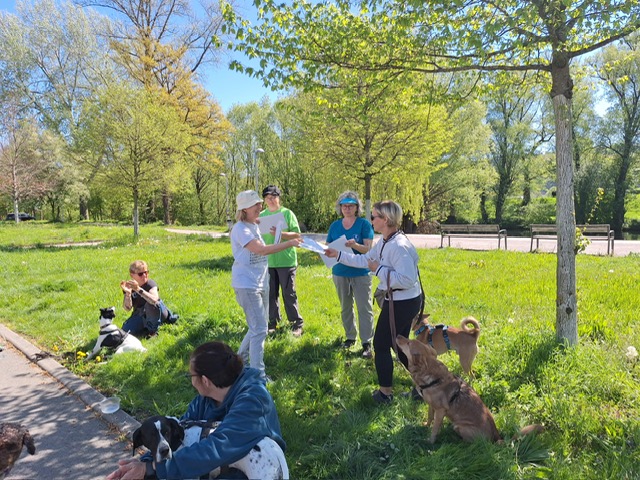 Die Frühlingssonne lachte den Prüflingen ins Gesicht: 10 bestandene Basic 1 Prüfungen, davon 2 Hunde aus den Tierheimen Böblingen und Reutlingen, 5 bestandene Basic 2 Prüfungen und eine bestande Advanced Prüfung – besser konnte das Ergebnis nicht sein.